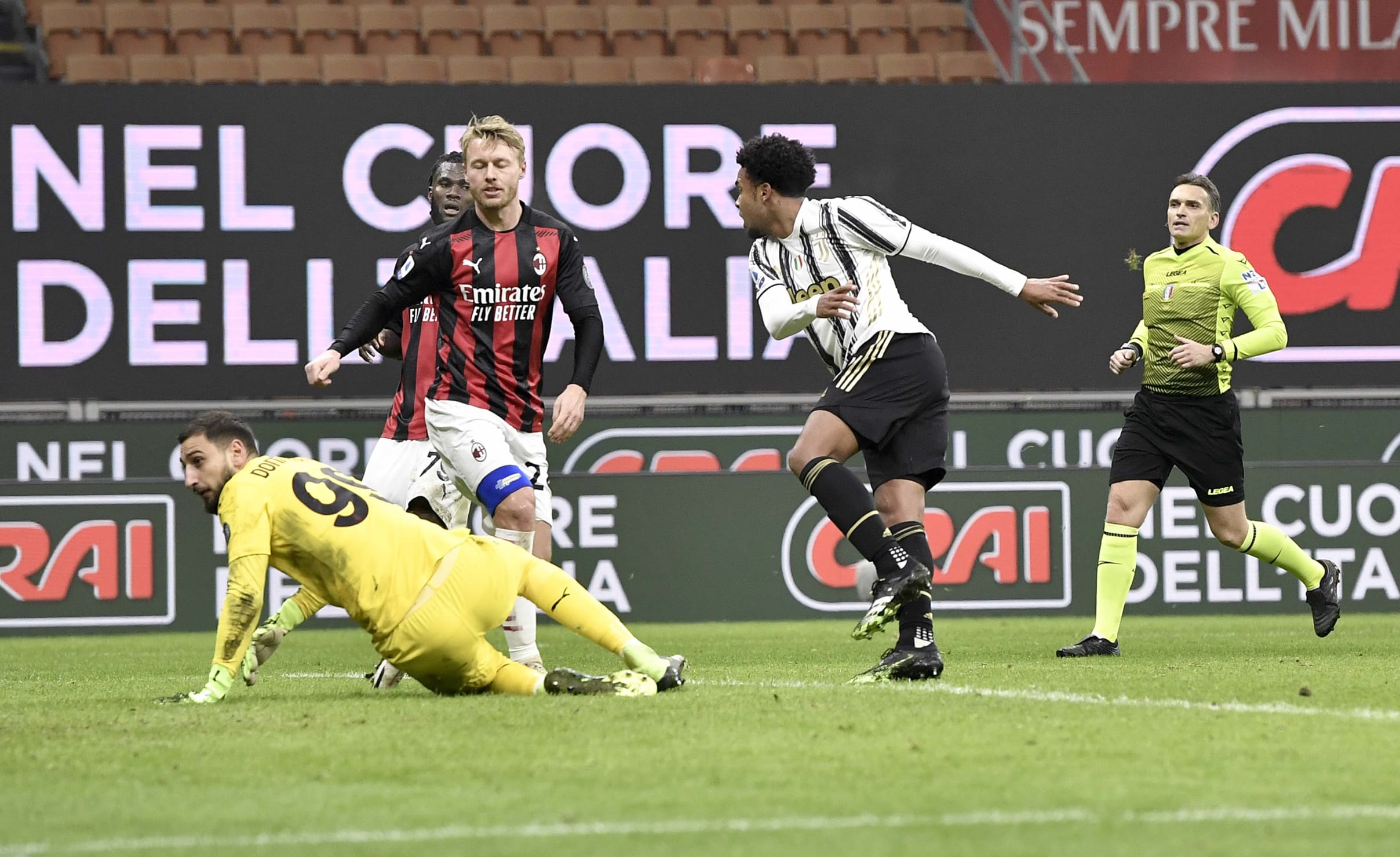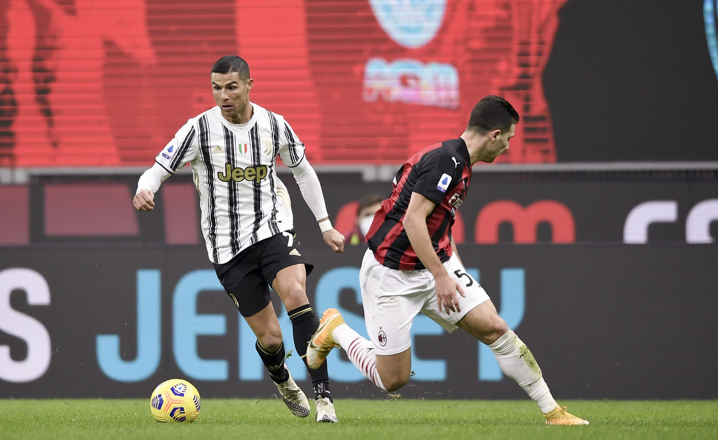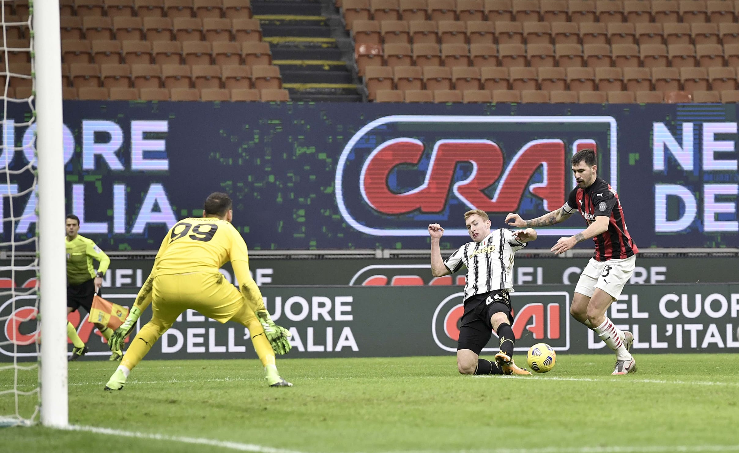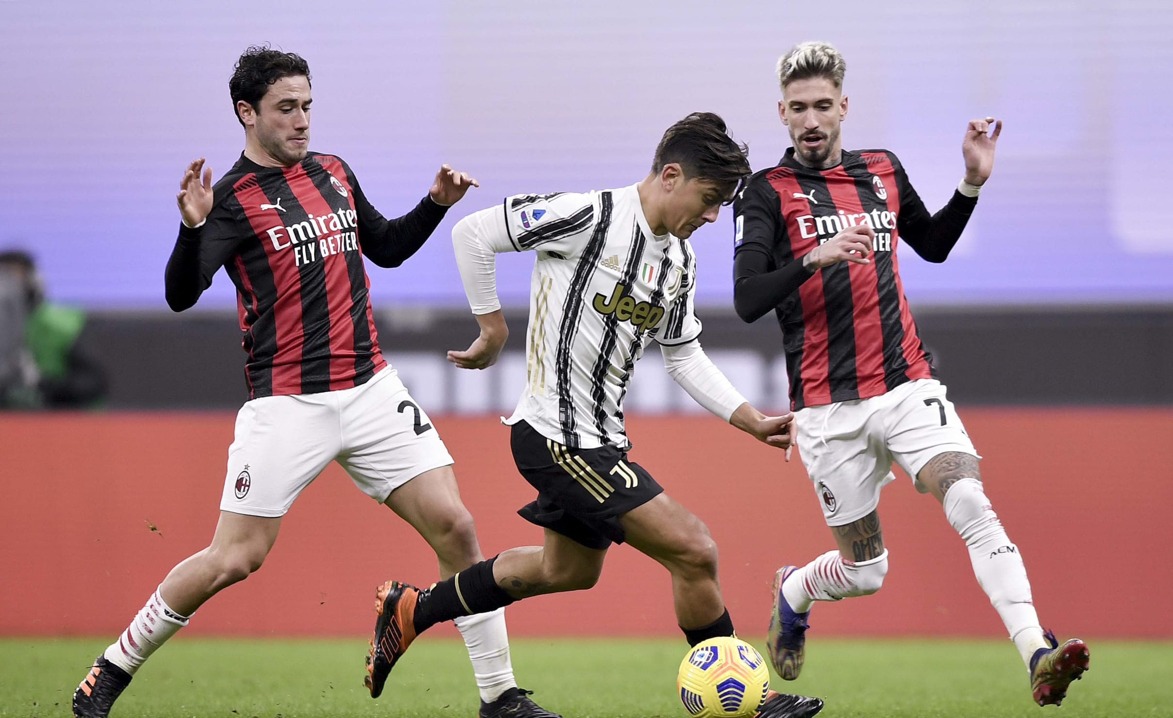 آندره آ پیرلو، خوان کوادرادو و الکس ساندرو را به دلیل مثبت شدن تست کرونای آن ها در اختیار نداشت. یوونتوس تنها به دو دقیقه زمان نیاز داشت تا دوناروما را وادار به واکنش کند، در صحنه ای که فرابوتا از دالوت عبود کرد و با پاس به بیرون، دیبالا را صاحب توپ کرد و او هم به سمت تیر نزدیک تر ضربه زد. میلان با خلق دو موقعیت گلزنی پاسخ داد. ضربه ی لیائو به بیرون رفت و ضربه ی کاستیخو توسط شزنی مهار شد. سپس ضربه ی فرابوتا به بالای دروازه رفت که ده دقیقه ی اول را به شکلی هیجان انگیز به پایان رساند.