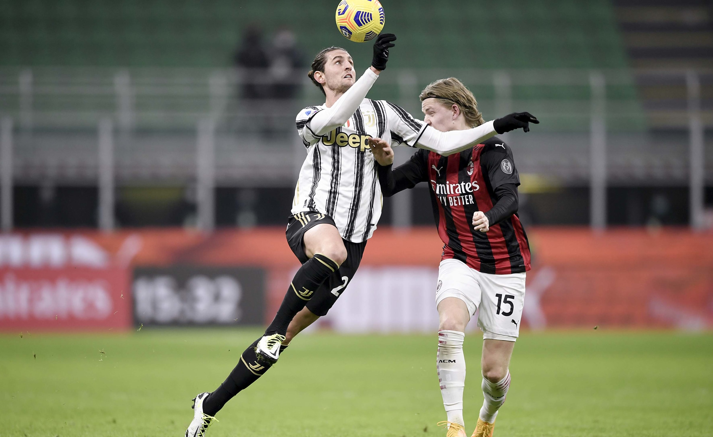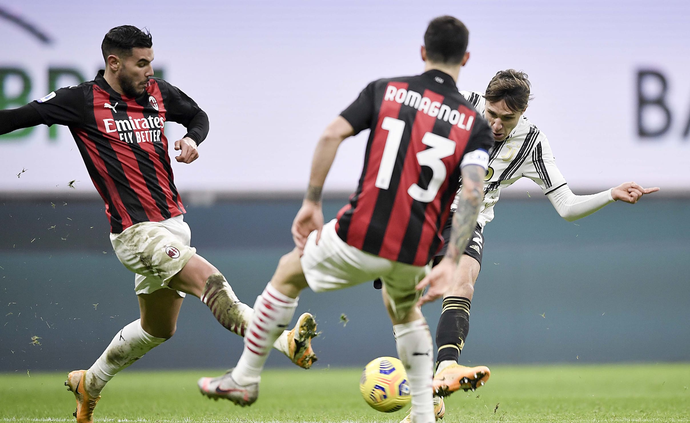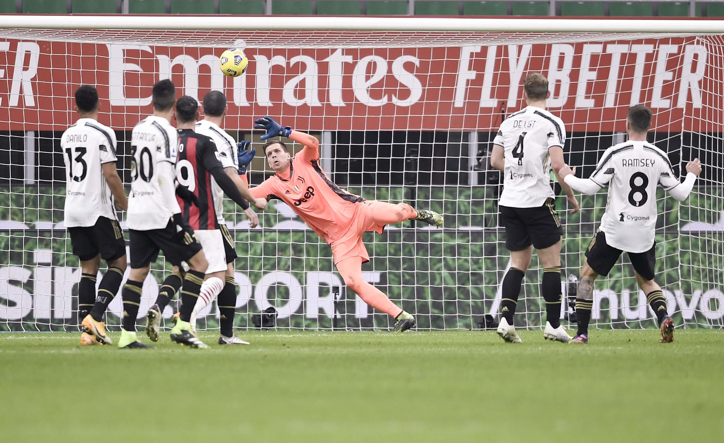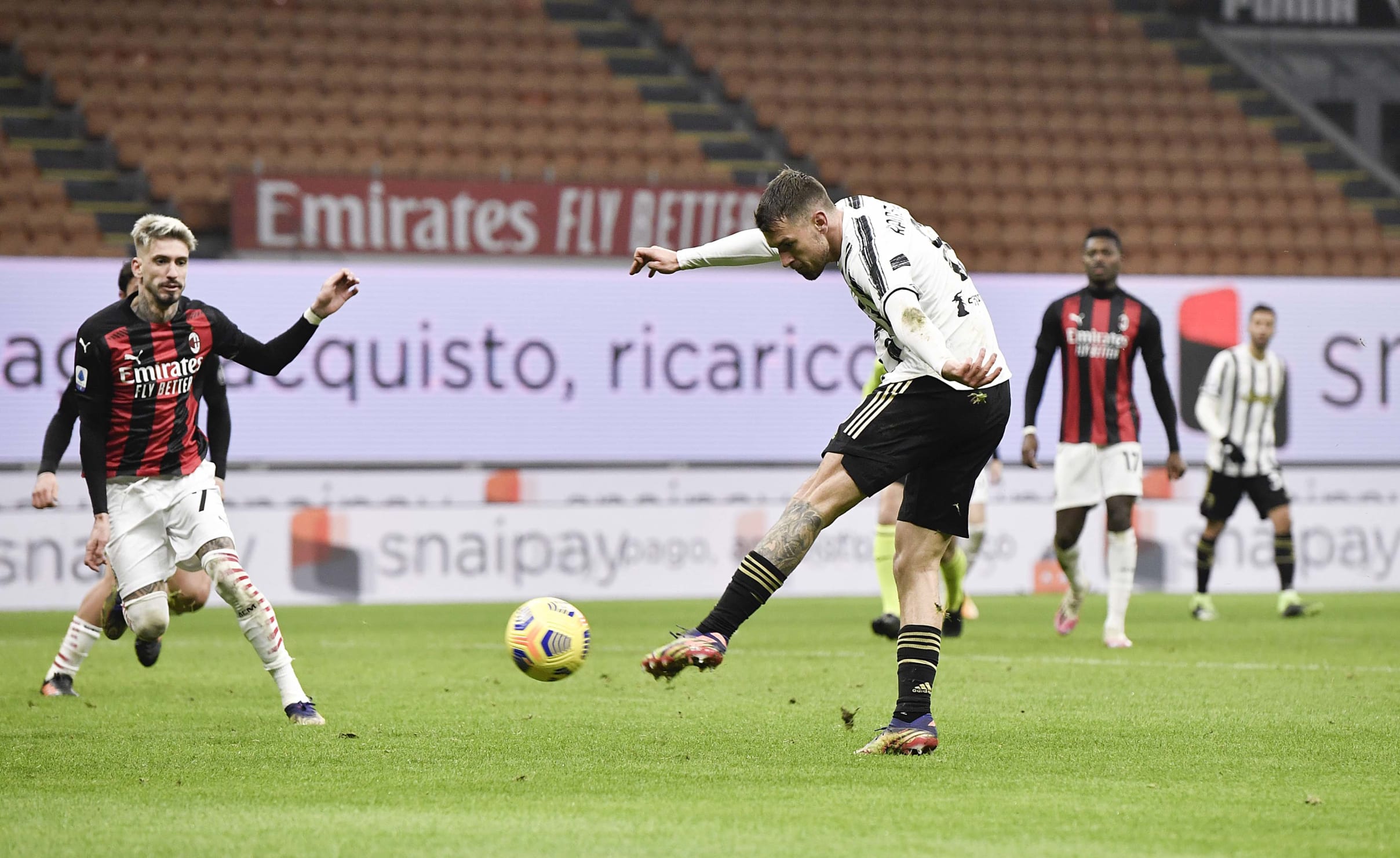 آندره آ پیرلو، خوان کوادرادو و الکس ساندرو را به دلیل مثبت شدن تست کرونای آن ها در اختیار نداشت. یوونتوس تنها به دو دقیقه زمان نیاز داشت تا دوناروما را وادار به واکنش کند، در صحنه ای که فرابوتا از دالوت عبود کرد و با پاس به بیرون، دیبالا را صاحب توپ کرد و او هم به سمت تیر نزدیک تر ضربه زد. میلان با خلق دو موقعیت گلزنی پاسخ داد. ضربه ی لیائو به بیرون رفت و ضربه ی کاستیخو توسط شزنی مهار شد. سپس ضربه ی فرابوتا به بالای دروازه رفت که ده دقیقه ی اول را به شکلی هیجان انگیز به پایان رساند.