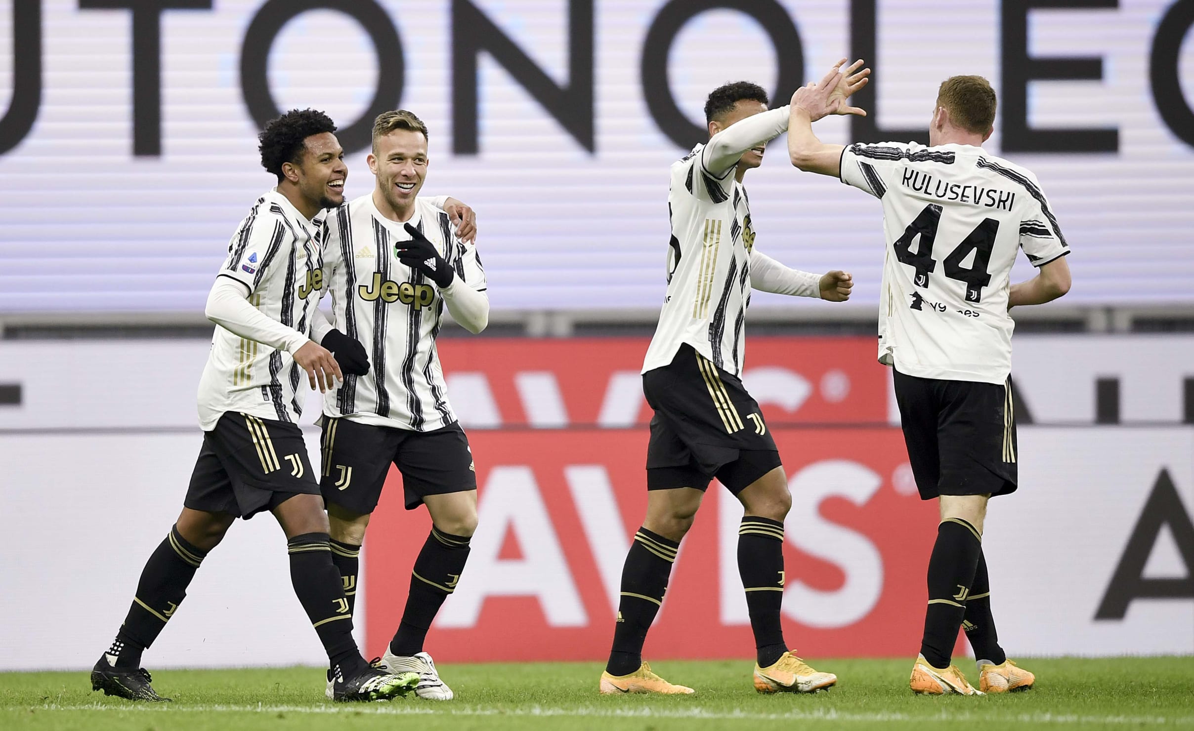 یوونتوس: شزنی، دنیلو، دلیخت، بونوچی، فرابوتا (دمیرال دقیقه ی ۸۷)، کیه زا (کولوسفسکی دقیقه ی ۶۳)، بنتانکور (آرتور دقیقه ی ۷۴)، رابیو، رمزی (برناردسکی دقیقه ی ۷۴)، دیبالا (مک کنی دقیقه ی ۶۳)، رونالدو.