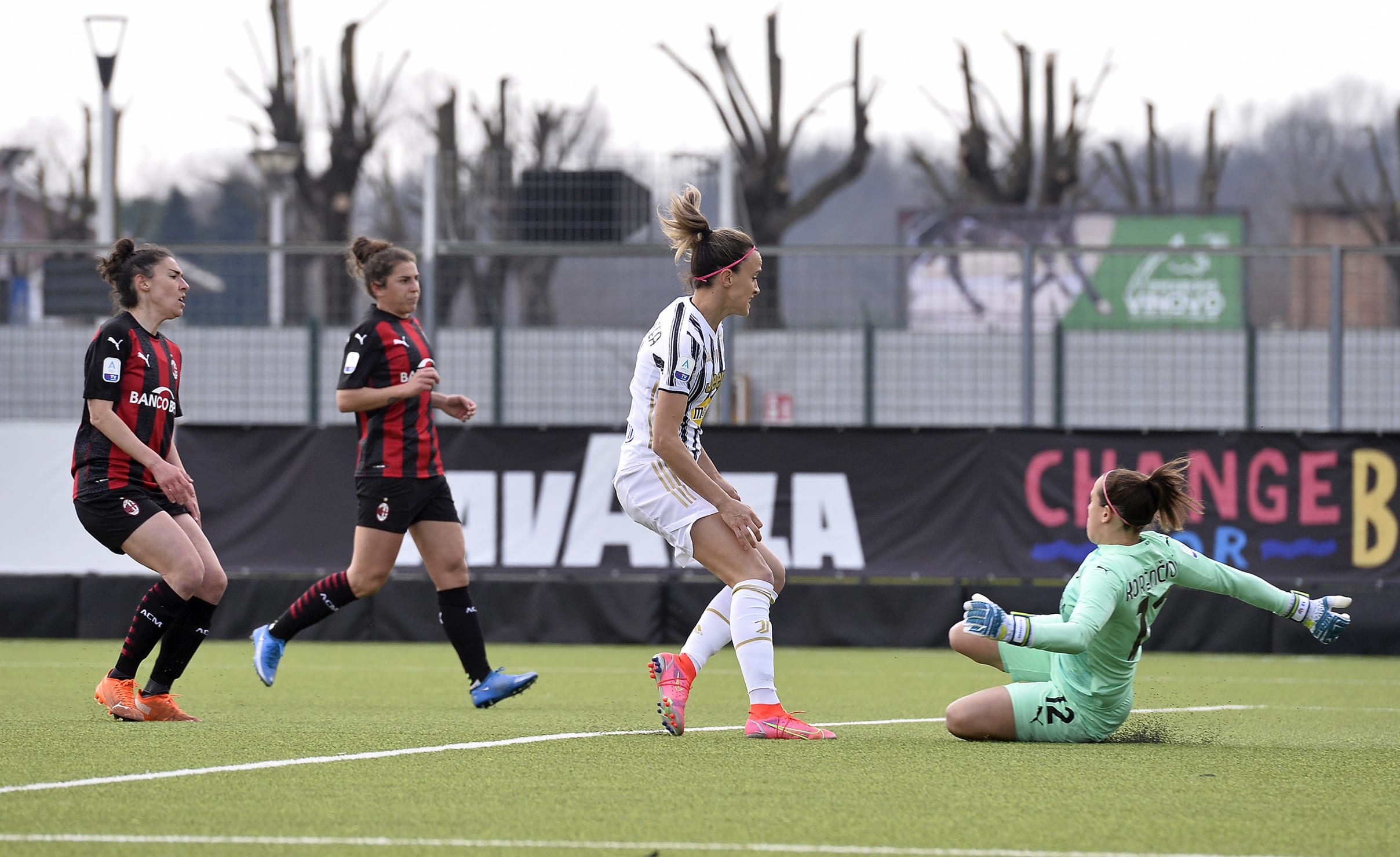 در دقیقه ی ۵۹، میلان اولین موقعیت جدی خود را در این بازی به دست آورد در صحنه ای که ولنتینا جیاسینتی در موقعیت تک به تک قرار گرفت اما لارا جولیانی یک مهار فوق العاده با پا انجام داد تا کاپیتان میلان را ناکام بگذارد.