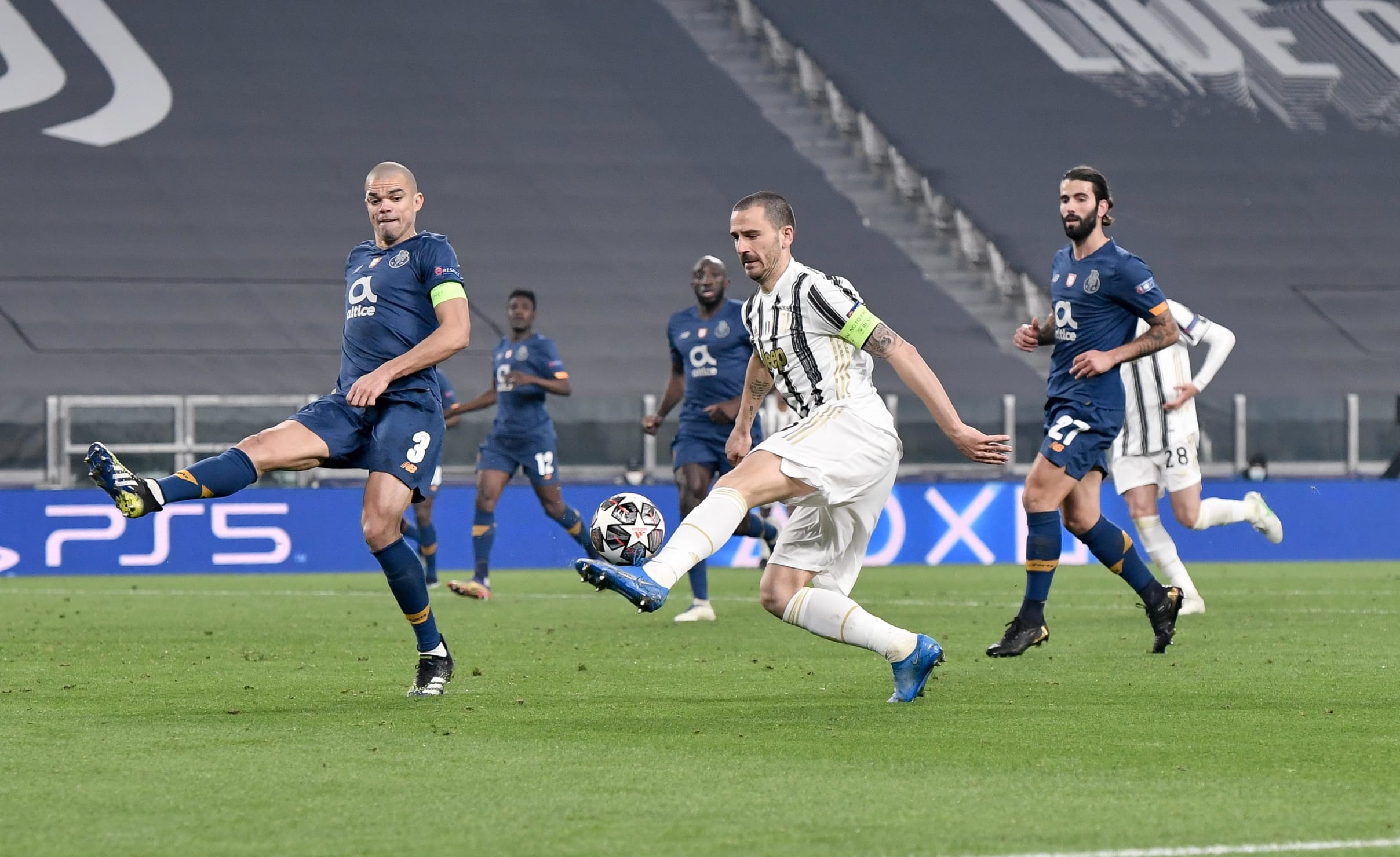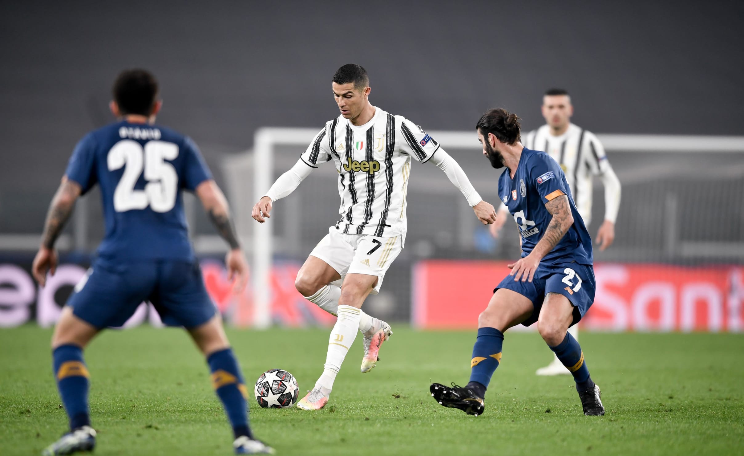 یوونتوس توانست در ورزشگاه آلیانز به برتری ۳-۲ دست یابد اما این برای صعود کافی نبود تا پورتوی ده نفره به لطف گل زده بیشتر در خانه ی حریف با تساوی ۴-۴ در مجموع دو بازی به یک چهارم نهایی لیگ قهرمانان اروپا برسد.