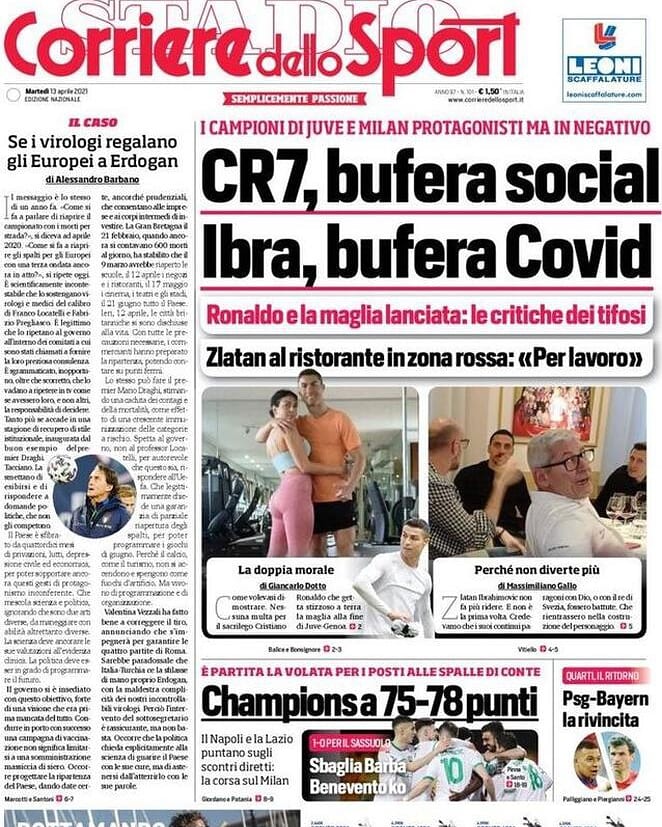 به گزارش وبسایت باشگاه طرفداران رسمی یوونتوس ایران – تیتر اول روزنامه های چاپ ایتالیا در تاریخ ۱۳ آپریل ۲۰۲۱ – ۲۴ فروردین ۱۴۰۰ به شرح زیر است: