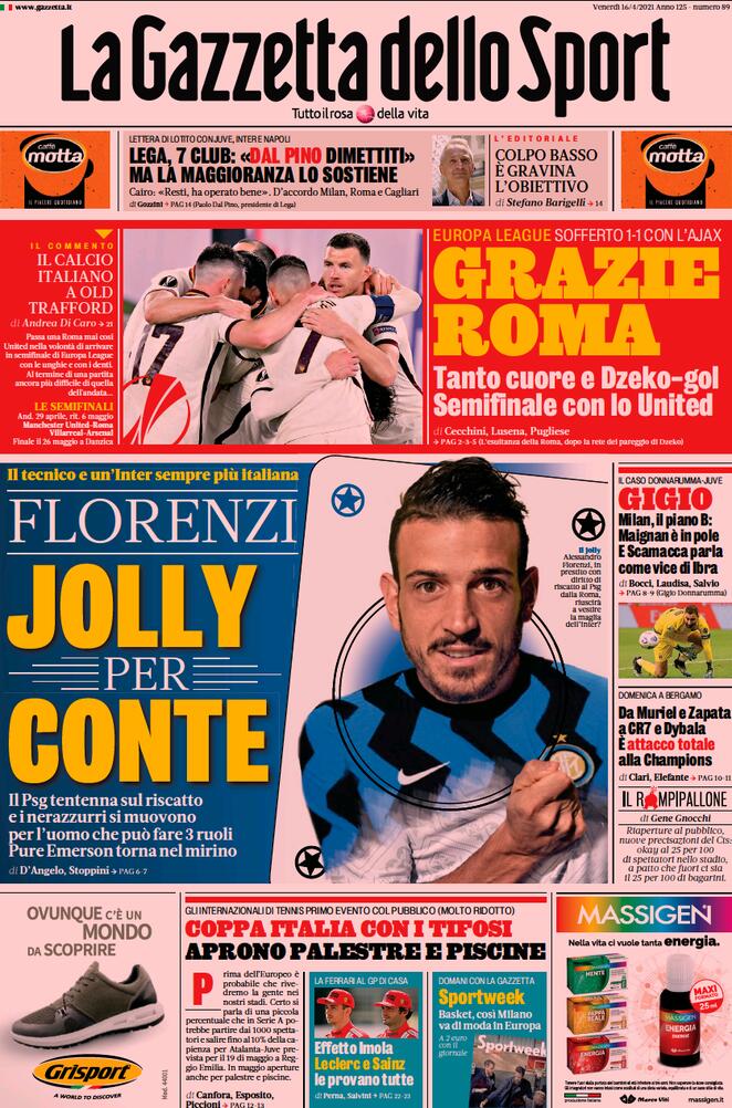 به گزارش وبسایت باشگاه طرفداران رسمی یوونتوس ایران – تیتر اول روزنامه های چاپ ایتالیا در تاریخ ۱۶ آپریل ۲۰۲۱ – ۲۷ فروردین ۱۴۰۰ به شرح زیر است: