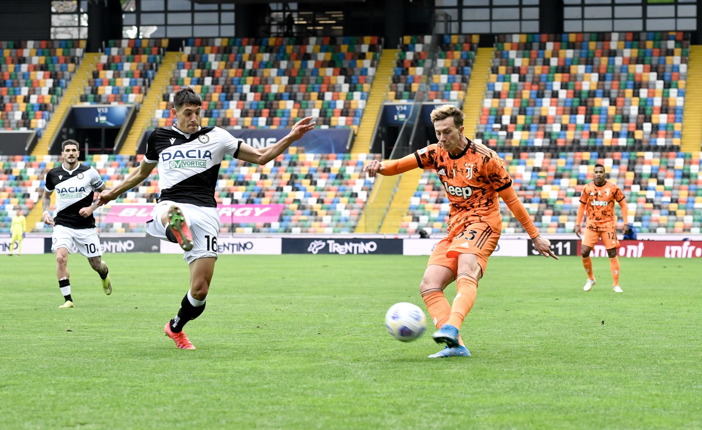 در آغاز نیمه دوم شوت آرسلان بازیکن ادوینزه از درون محوطه جریمه با فاصله بسیار کمی از کنار دروازه به بیرون رفت در حالی شوت رونالدو به راحتی توسط اسکافت مهار شد. سپس استرایگر لارسن دید که تلاش های دور و درازش از بالای دروازه به بیرون می رود پیش از اینکه ضربه ی سر بونیفازی از زمین خارج شود. در دقیقه ی ۸۱ یک ضربه ی پنالتی به یووه اعطا شد زیرا ضربه ی آزاد کریستیانو در محوطه ی جریمه به دست رودریگو دی پائول برخورد کرد و خطای هند اعلام شد. پرتغالی پشت ضربه ی پنالتی ایستاد و از پشت ۱۱ قدم توپ را بدون اشتباه به تور دروازه حریف چسپاند. این گل باعث شد یوونتوس بر انگیخته شود و سپس بیانکونری در دقیقه ی ۸۹ با رونالدو به گل برتری دست پیدا کند، کریستیانو با یک ضربه سر روی سانتر ارسالی از راه دور رابیوت، توپ را بین دستان اسکافت و تیرک عمودی وارد دروازه کرد.