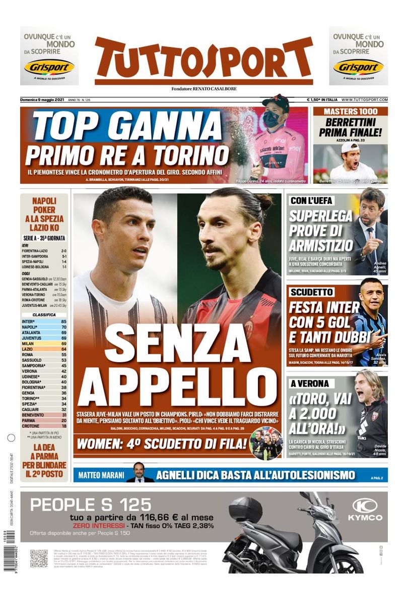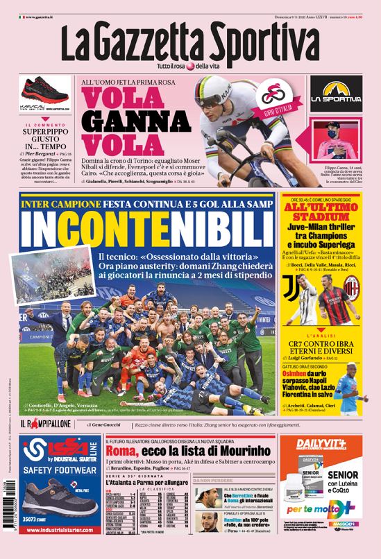 به گزارش وبسایت باشگاه طرفداران رسمی یوونتوس ایران – تیتر اول روزنامه های چاپ ایتالیا در تاریخ ۹ می ۲۰۲۱ – ۱۹ اردیبهشت ۱۴۰۰ به شرح زیر است: