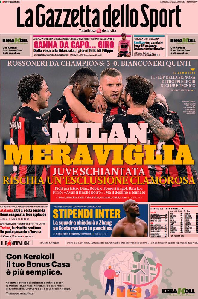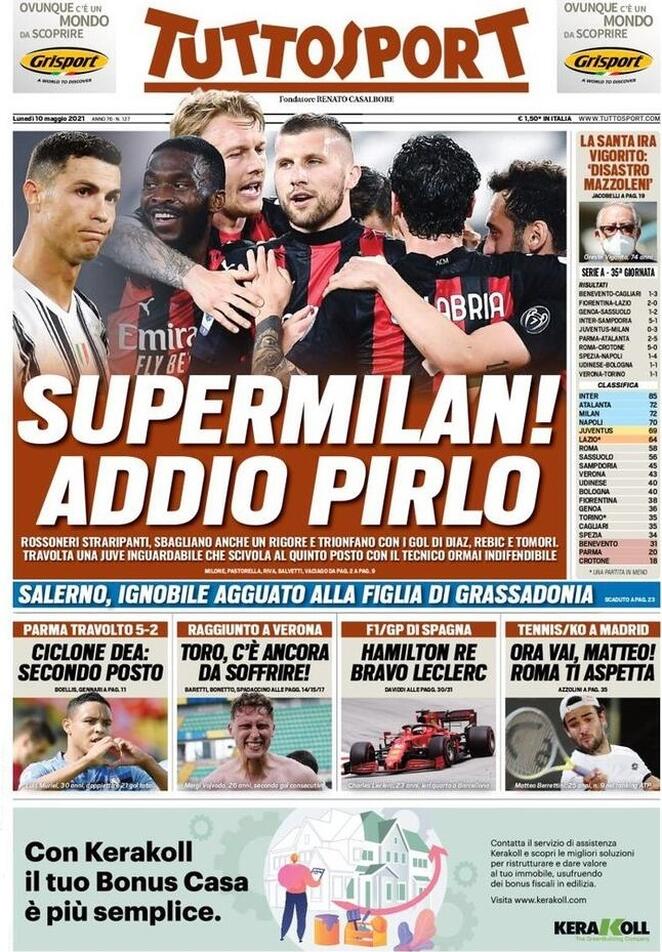 به گزارش وب‌سایت باشگاه طرفداران رسمی یوونتوس ایران – تیتر اول روزنامه های چاپ ایتالیا در تاریخ ۱۰ می ۲۰۲۱ – ۲۰ اردیبهشت ۱۴۰۰ به شرح زیر است: