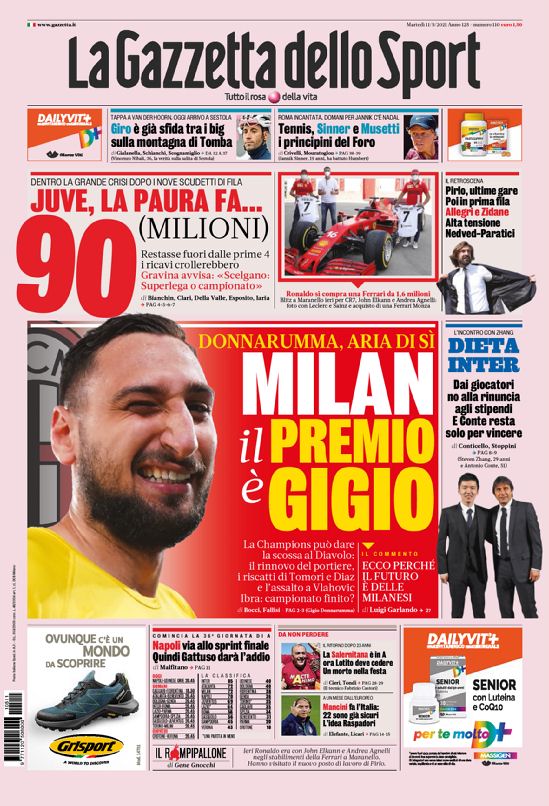 در تورین؛ رویارویی شاگردان نیکولا با میلان – در میلان؛ “جیجیو، قهرمانان باید بمانند” – دوناروما؛ تمدید قرارداد نزدیک است اما تحت یک سری شرایط.
