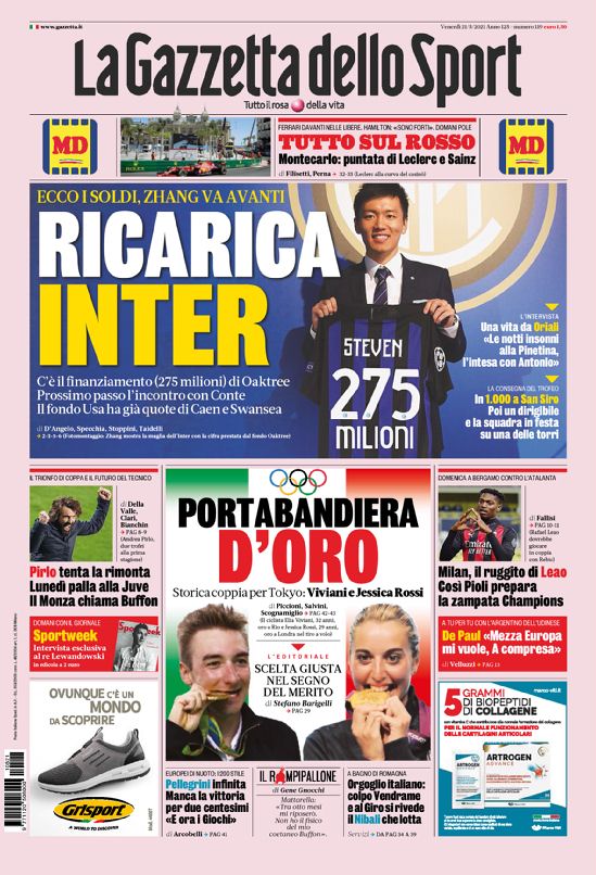 به گزارش وبسایت باشگاه طرفداران رسمی یوونتوس ایران – تیتر اول روزنامه های چاپ ایتالیا در تاریخ ۲۱ می ۲۰۲۱ – ۳۱ اردیبهشت ۱۴۰۰ به شرح زیر است: