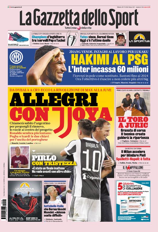 دنیای نقل و انتقالات: کونته با رئال مادرید مذاکره می‌ کند – ناپل: اسپالتی قرارداد را امضاء کرد – میلان برای رسیدن به دی پائول با اودینزه مذاکره می کند – یووزثچ رسماً هدایت تورینو را بر عهده گرفت، او قصد دارد این را به کلی تغییر دهد و خواهان جذب ۹ بازیکن برای تقویت تیم شده است.