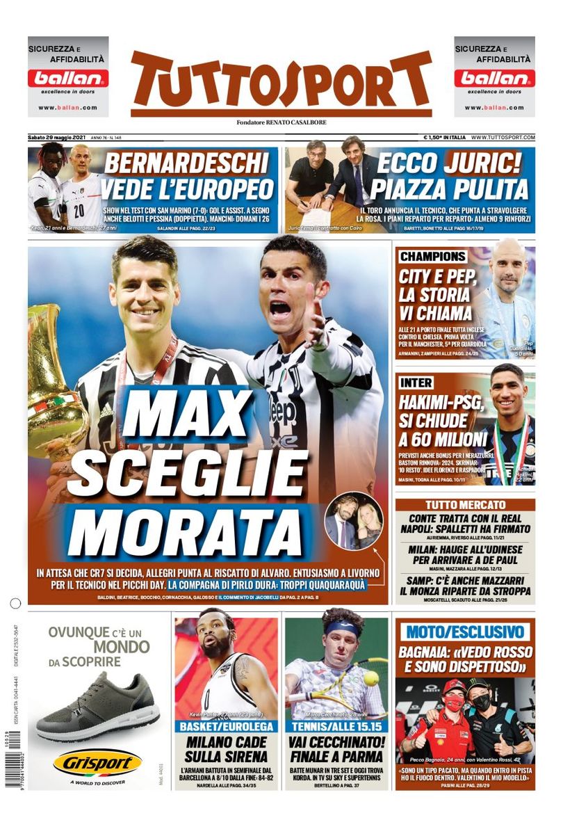 به گزارش وب‌سایت باشگاه طرفداران رسمی یوونتوس ایران – تیتر اول روزنامه های چاپ ایتالیا در تاریخ ۲۹ می ۲۰۲۱ – ۸ خرداد ۱۴۰۰ به شرح زیر است: