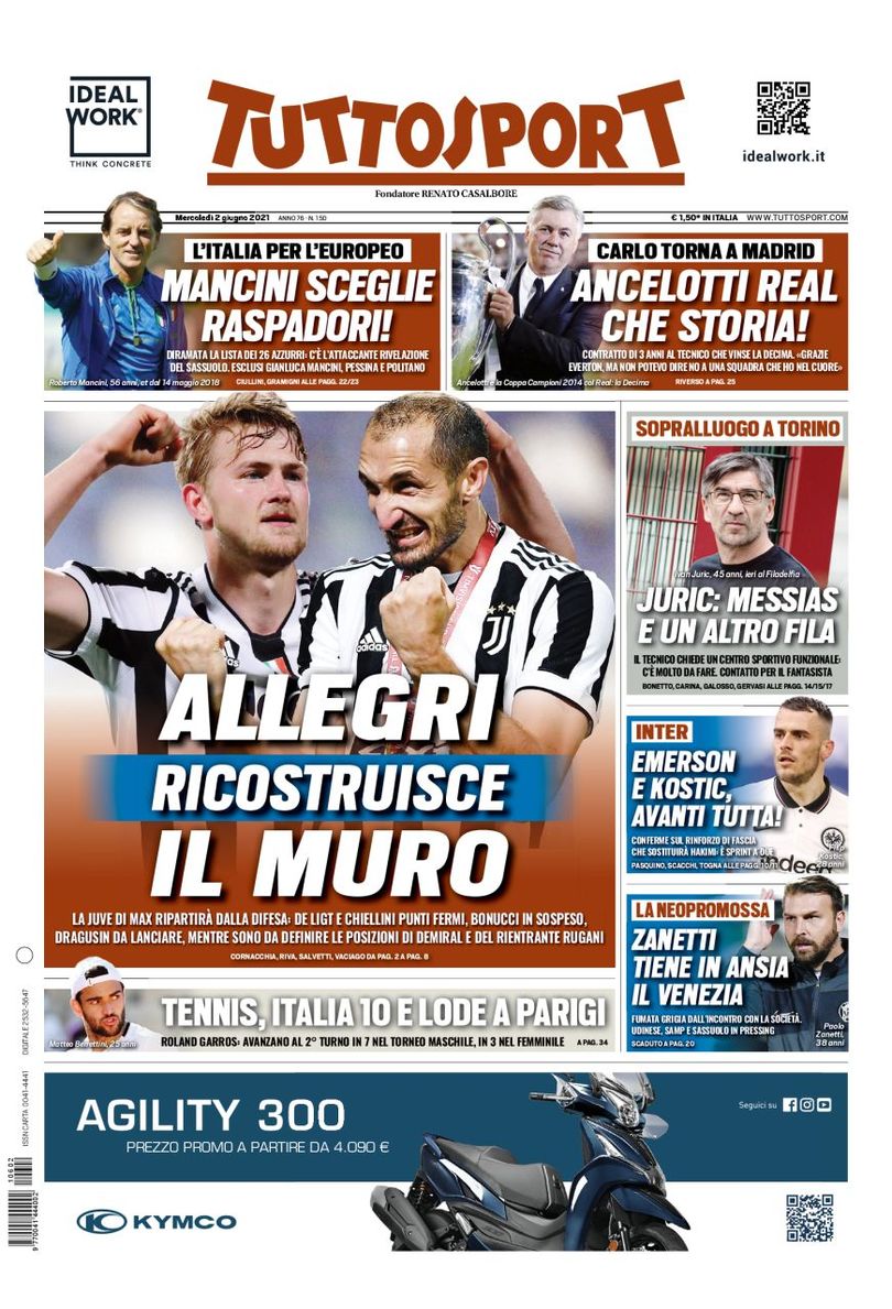 وضعیت خط دفاعی بیانکونری: “آلگری دوباره دیوار را می سازد” – یووه مکس دوباره از خطر دفاعی شروع می شود: لئوناردو بونوچی و ماتیاس دلیخت، جورجو کیهلینی منتظر تمدید قرارداد، کار بر روی دراگوسین و بررسی وضعیت دمیرال و روگانی.