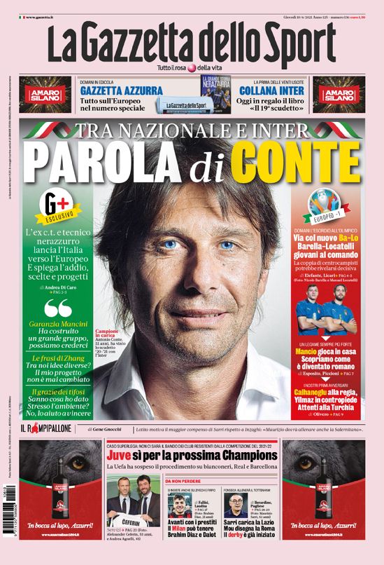 به گزارش وبسایت باشگاه طرفداران رسمی یوونتوس ایران – تیتر اول روزنامه های چاپ ایتالیا در تاریخ ۱۰ ژوئن ۲۰۲۱ – ۲۰ خرداد ۱۴۰۰ به شرح زیر است: