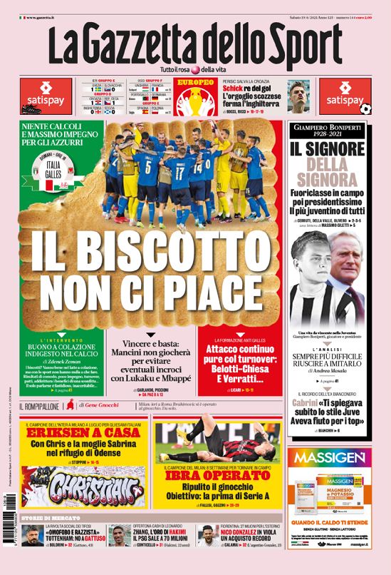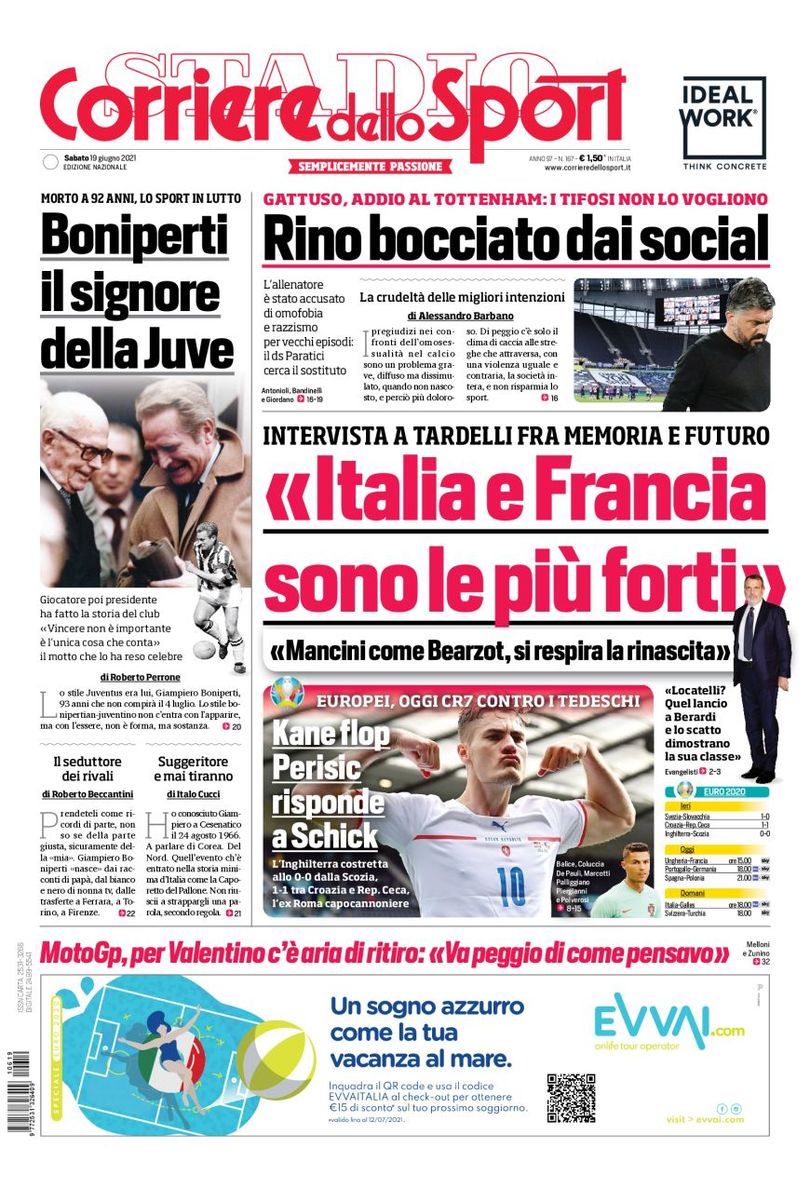 به گزارش وبسایت باشگاه طرفداران رسمی یوونتوس ایران – تیتر اول روزنامه های چاپ ایتالیا در تاریخ ۱۹ ژوئن ۲۰۲۱ – ۲۹ خرداد ۱۴۰۰ به شرح زیر است: