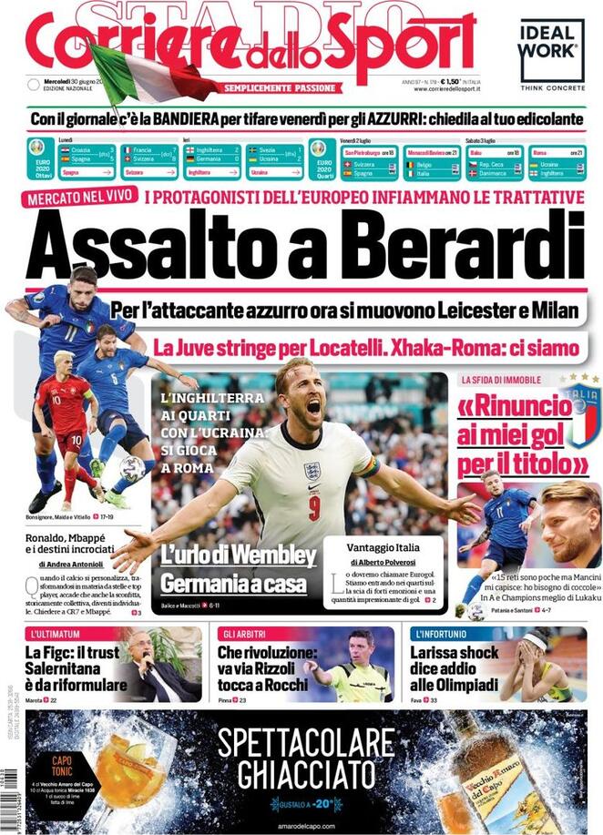 به گزارش وبسایت باشگاه طرفداران رسمی یوونتوس ایران – تیتر اول رزونامه های چاپ ایتالیا در تاریخ ۳۰ ژوئن ۲۰۲۱ – ۹ تیر ۱۴۰۰ به شرح زیر است: