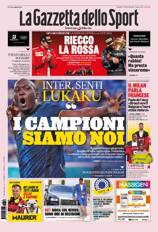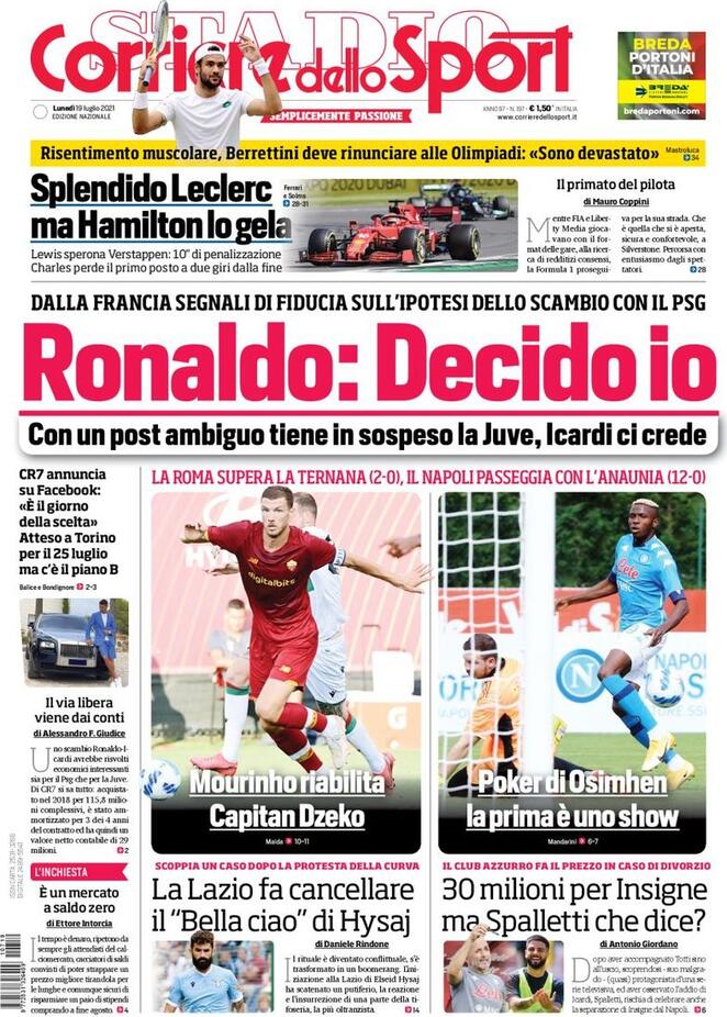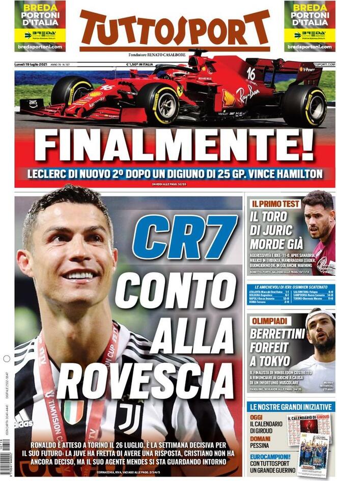 به گزارش وب‌سایت باشگاه طرفداران رسمی یوونتوس ایران – تیتر اول روزنامه های چاپ ایتالیا در تاریخ 19 ژوئیه 2021 – 28 تیر 1400 به شرح زیر است: