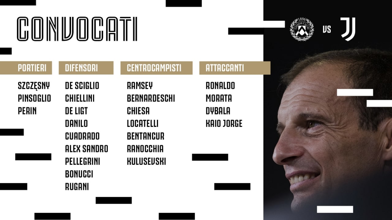 فهرست کامل بازیکنان تیم یوونتوس برای دیدار با تیم اودینزه به شرح زیر است: