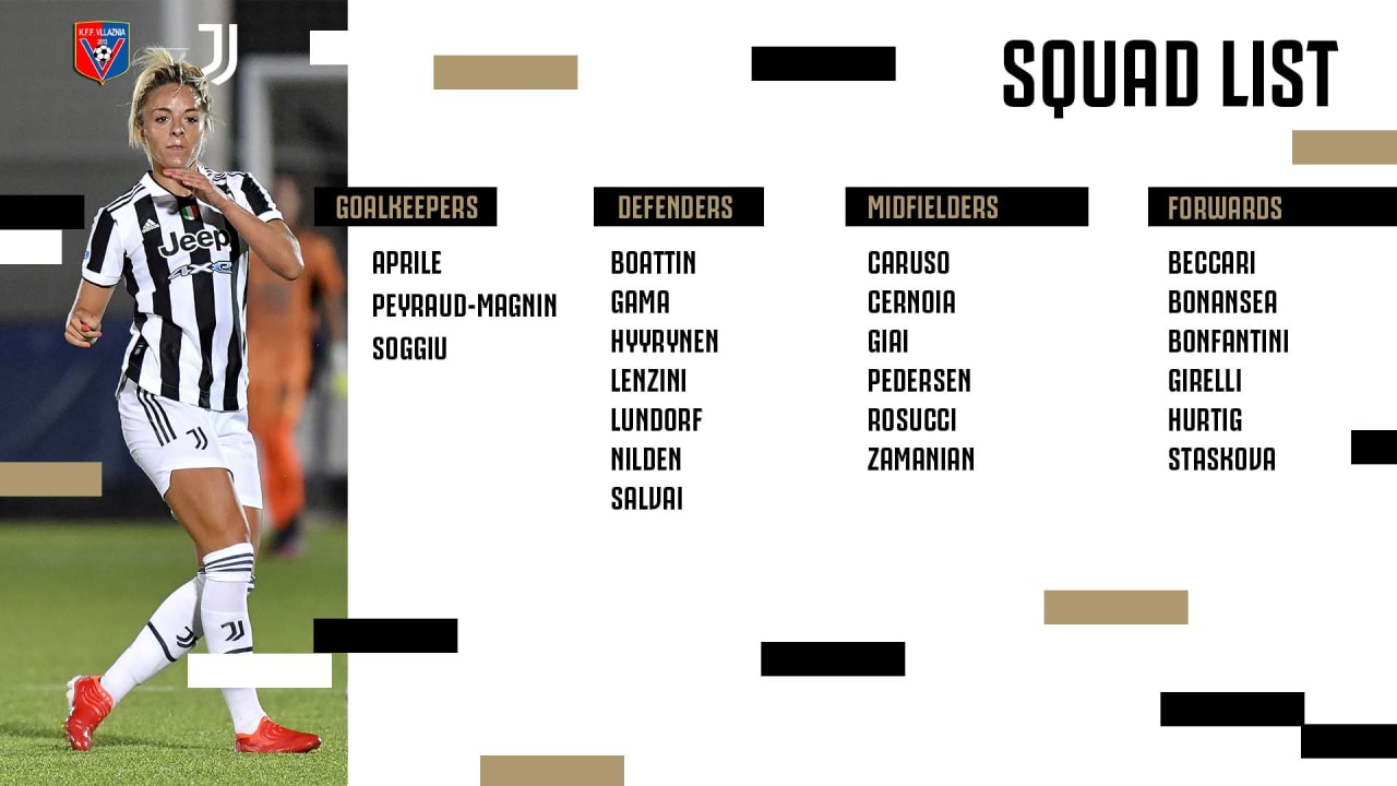 فهرست کامل تیم بانوان یوونتوس برابر تیم ولازنیا در جریان دور دوم انتخابی لیگ قهرمانان زنان اروپا به طور رسمی اعلام شد.
