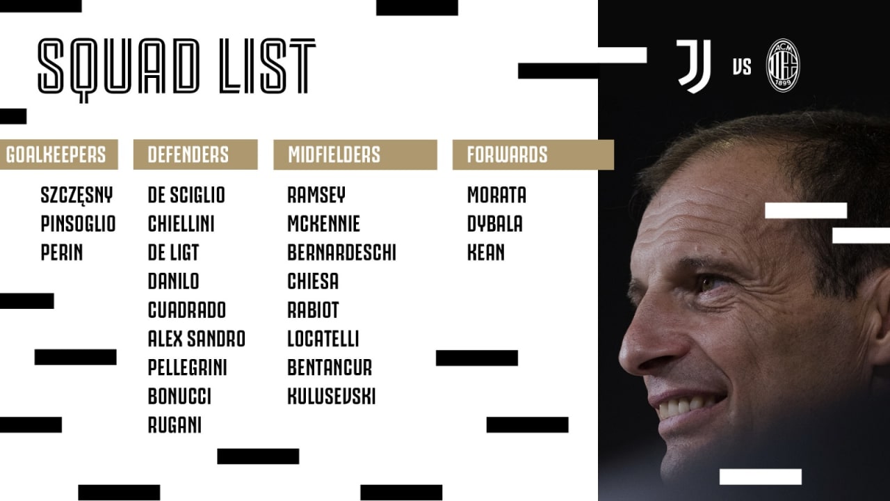 فهرست کامل بازیکنان تیم یوونتوس برای دیدار با تیم میلان به طور رسمی منتشر شد.