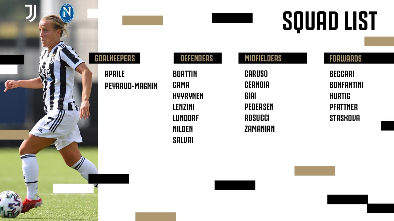 این بازی، ساعت ۱۶ به وقت ایران در Juventus Center برگزار میشود. هواداران میتوانند این دیدار را به طور زنده از شبکه رسمی یوونتوس تماشا کنند. جو مونتیمورو، سرمربی تیم بانوان یوونتوس، فهرست کامل بانوان دعوت شده برای دیدار با تیم ناپولی را اعلام کرد.