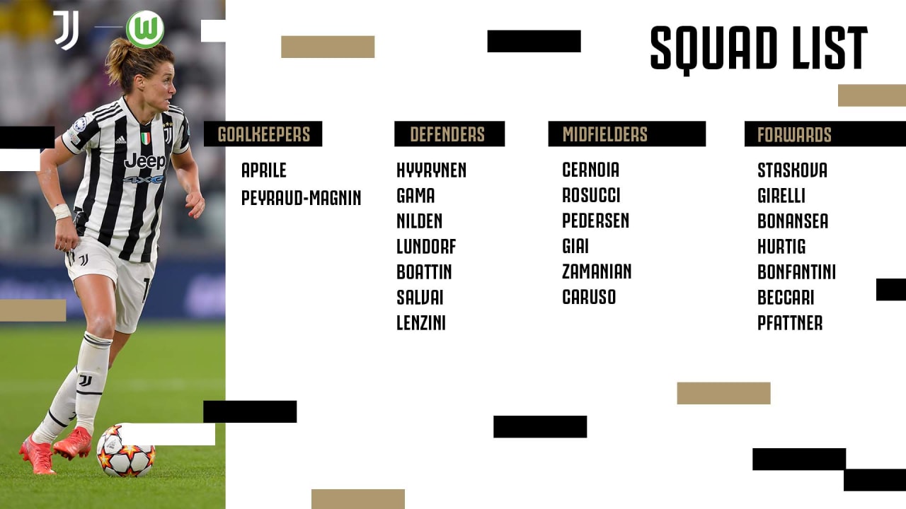 فهرست تیم بانوان یوونتوس برای بازی با وولفسبوگ بدین شرح است: