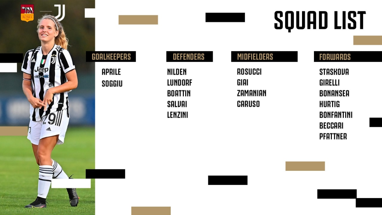 فهرست کامل تیم بانوان یوونتوس برای بازی با تیم رم سی اف در دور اول جام خذفی زنان ایتالیا نیز به طور رسمی اعلام شد.