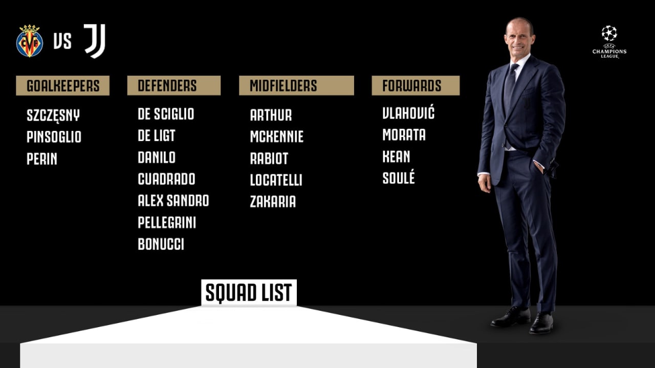 فهرست کامل بازیکنان دعوت شده تیم یوونتوس برای دیدار رفت با تیم ویارئال بدین شرح است: