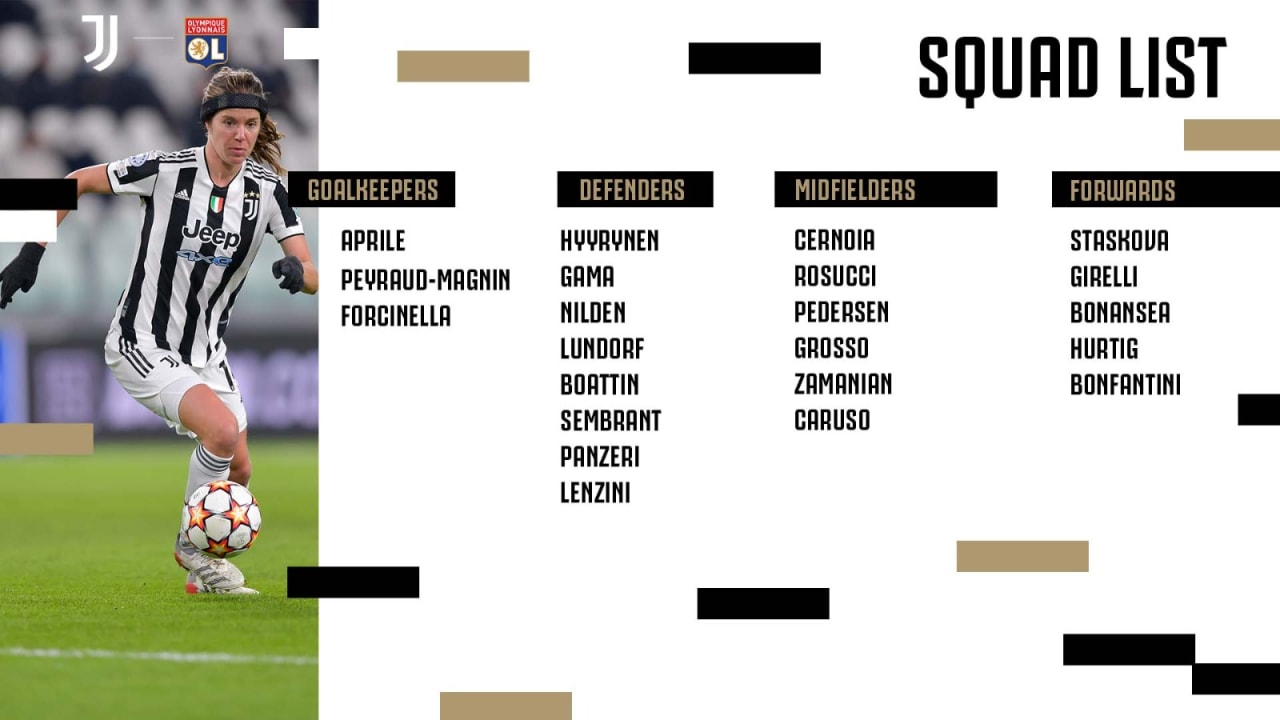 فهرست بانوان دعوت شده تیم یوونتوس برای دیدار مهم برابر بانوان لیون فرانسه در چارچوب مسابقات لیگ قهرمانان زنان اروپا به طور رسمی مشخص شد.