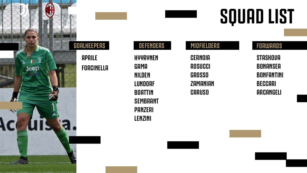فهرست بازیکنان دعوت شده تیم بانوان یوونتوس برای دیدار دور برگشت مرحله نیمه نهایی جام حذفی فوتبال زنان ایتالیا (کوپا ایتالیا) برابر بانوان میلان به طور رسمی اعلام شد.