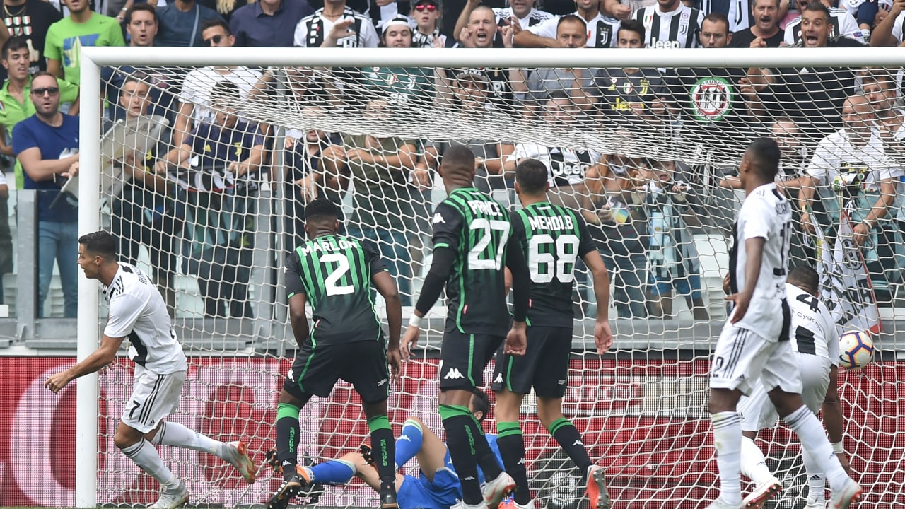 گل اول کریستیانو رونالدو در پیراهن سیاه و سفید بانوی پیر، در بازی برابر ساسولو به ثمر رسید. البته رونالدو در این بازی سنگ تمام گذاشت و دومین گل خود را پس از گذشت ۱۵ دقیقه وارد دروازه ساسولو کرد. هواداران حاضر در ورزشگاه آلیانز شهر تورین، به مانند گلی که او در زمان حضورش در رئال مادرید به یوونتوس (مرحله یک چهارم نهایی لیگ قهرمانان اروپا) زد، از او استقبال کردند و ایستاده او را مورد مورد ستایش قرار دادند.
