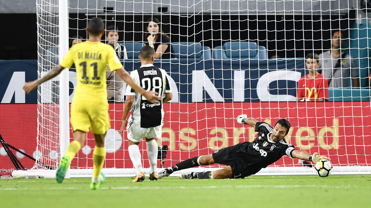 عکس بالا یکی از لحظات آخرین دیدار یوونتوس و پاریس سن ژرمن را نشان می‌دهد. این بازی در استادیوم هارد راک میامی، مورخ ۲۶ ژوئن ۲۰۱۷ انجام شد. یوونتوس در این بازی با نتیجه ۳-۲ پیروز شد، زمانی که سومین فصل حضور دی ماریا در پاریس بود. همچنین جیجی بوفون در تصویری که باعث نجات دروازه بیانکونری شده است، حضور ۲۰ساله او در یوونتوس با یک فصل حضور در پاریس قطع شد.