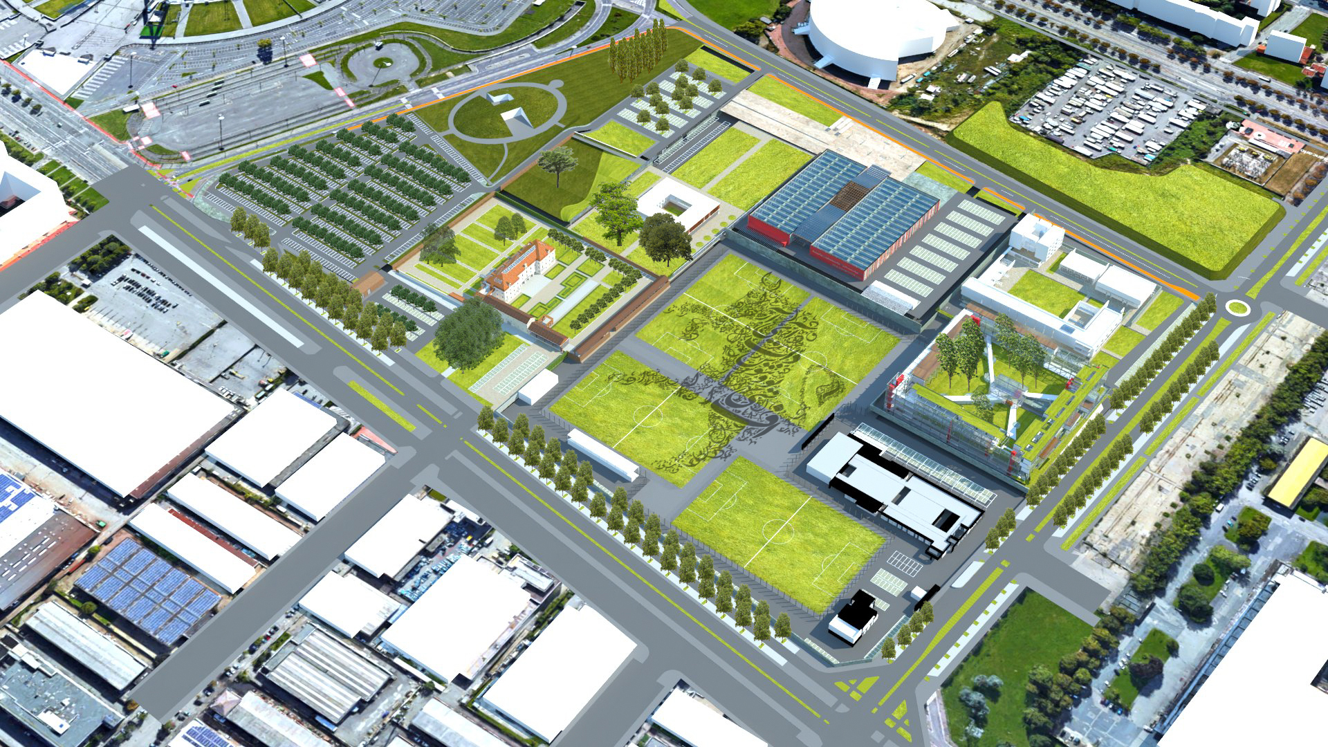 این پروژه، با هماهنگی استودیو Rolla و تیم استودیو Sintecna در تورین به سرپرستی پروفسور پائولو ناپولی انجام شده، که مساحتی در حدود ۴٫۳۷۰ متر مربع را به خود اختصاص داده است توسط شرکت ساختمانی تجارت ساخت و ساز Pessina از میلان ساخته شده است. به موازات آن به جهت گسترش شهرنشینی، فضایی در حدود ۴۲٫۵۰۰ متر مربع از مناطق عمومی برای احداث پارکینگ، فضای سبز و جاده های جدید اختصاص داده شده است. این آثار با ارزشی به حدود ۴٫۲۵ میلیون یورو توسط شرکت ساختمانی پسینا از شهر میلان انجام شد.